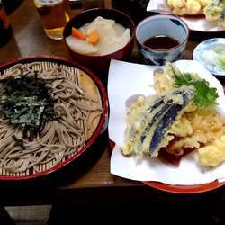 蕎麦はコシはありますが柔らかめ。天ぷらは野菜だけでなく海老も。