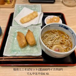 平たいそばはコシが無い。イカ天は揚げたて美味い。