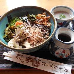 地元産のそば粉と山菜等を贅沢に使った蕎麦です。いっぱい具がのっていますが、特に舞茸の食感と山椒の葉の香りが気に入りました。