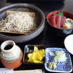 暑かったので手打ちざるセットを注文。セット丼物は日替わりだそうで今日はマグロ丼。