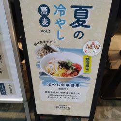 この界隈に来る機会が最近増えているが、新しくできたと思われるこちらのお店で、極希に見かける蕎麦での冷やし中華のPOPを発見(外観写真参照)。