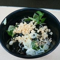 岩海苔と三つ葉、揚げ玉、薬味にお葱とワサビの仕様。