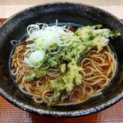 閉館した「中野サンプラザ」を眺めつつ駅から商店街を北に進むとこちらが右手に。「田舎そば」の店に行くか迷いましたが、こちら初訪ゆえにいざ入店。昼をちょっとすぎた時間でも黒山の人だかりの中、おなじみ春菊天のそばを頂きました。久しぶりの「梅もと」、そばも春菊天も十分満足のゆく一杯、人気がある訳ですね。優しめのソバツユを最後まで飲み干してご馳走様でした。