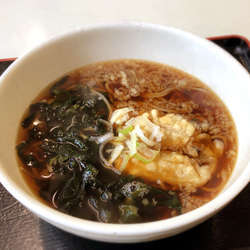 たねはカットした揚げ置きのげそ天。わかめ、揚げ玉、長ネギ。