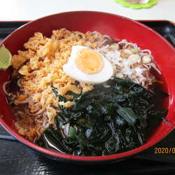 「たぬきそば 350円+生玉子 80円」@こだわりの立ち食いそば たからんちょの写真2024/11/19 出社したのですが緊急事態のため早退。